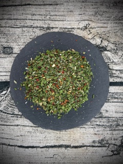 Schnittlauch, Paprika, Zwiebel, Suppe, Knoblauch, Meersalz 7%, Pfeffer, Oregano, Basilikum, Zucker 3%, Majoran.