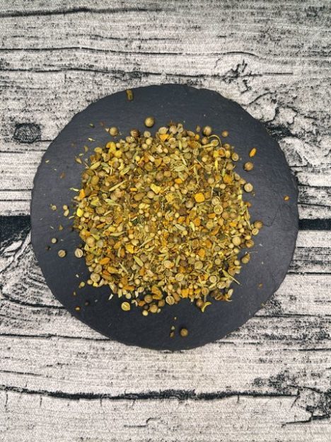 Milde Curry-Gewürzmischung für die Mühle. Frische BIO Saaten und Kräuter machen diesen Curry zu einem ganz besonderen.
