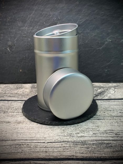 Runde Stülpdeckeldose blank mit doppeltem Deckel; Dose 63×105 mm aus elektrolytischem Weißblech.