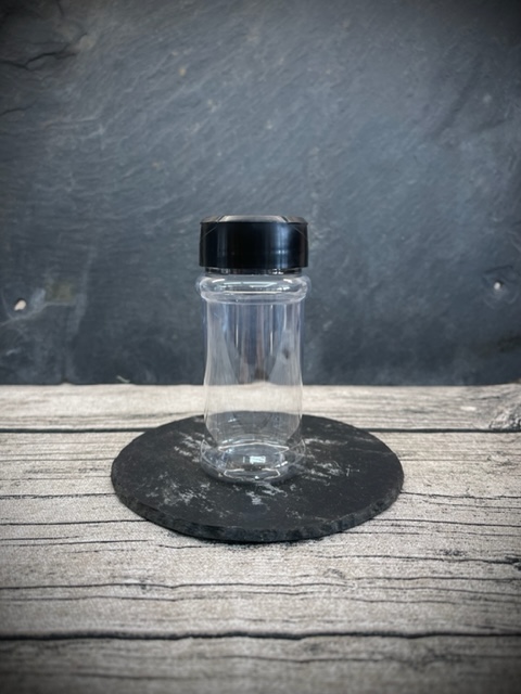 Die Gewürzdose ist aus PET und hat einen aufklappbaren Grob- und Feinstreuer.