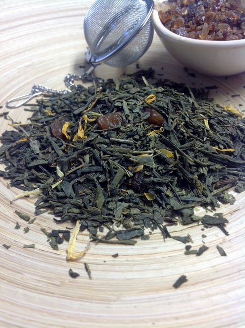 Grüner Sencha-Tee, Sultaninen, Aroma, Ringelblumenblüten