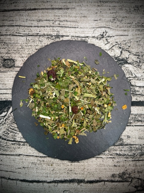 Zutaten: Weißdornblätter mit Blüten, Gingko, Weißdornbeeren, Rosmarin, Petersilie, Steinklee, Brennnessel