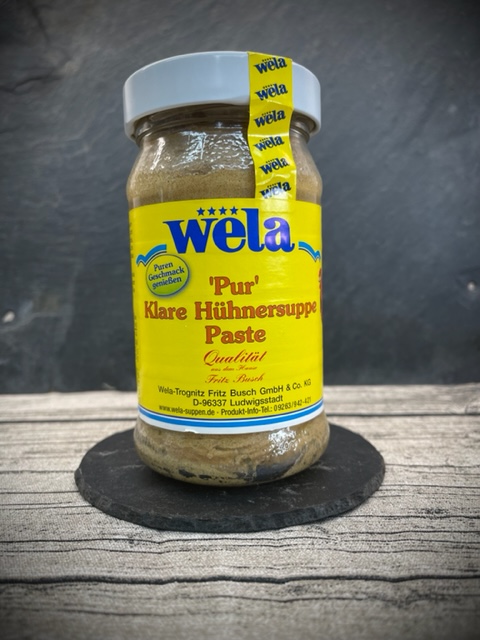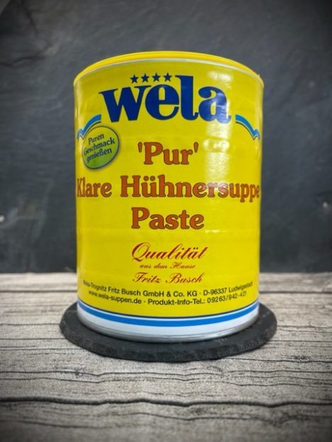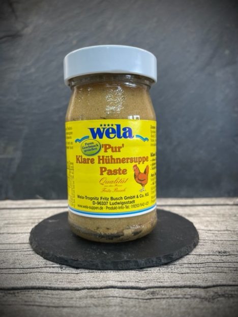 Klare Hühnersuppe Paste mit dem unverwechselbaren Geschmack, von bestem Hühnerfleisch.