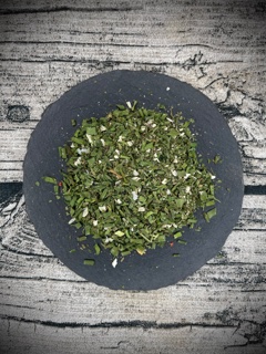 Knoblauch, Zwiebeln, Kräutermischung, Schnittlauch, Meersalz 8%, Petersilie, Pfeffer weiß, Kerbel, Muskat, Liebstöckel, Dillspitzen, Estragon, Zucker 1%.