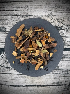 Zutatenliste: Orangenschalen, Ceylon Tee, Zitronenschalen, Zimt, Apfelstücke mit Vitamin C, Holunderbeeren, Sternanis, Koriander, Wacholderbeeren, Nelken, Cardamom, Piment, Anis.