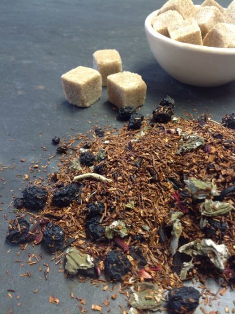 Rotbuschtee, Aroniabeeren, Hibiskus, Holunderbeeren, Heidelbeeren, Aroma, Himbeerblätter