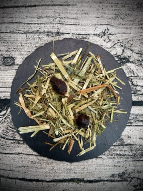 Grünhaferkraut, Löwenzahnkraut, Brennessel, Tausendgüldenkraut, Schafgarbe, Artischockenblätter, Hagebutten, Weißdorn