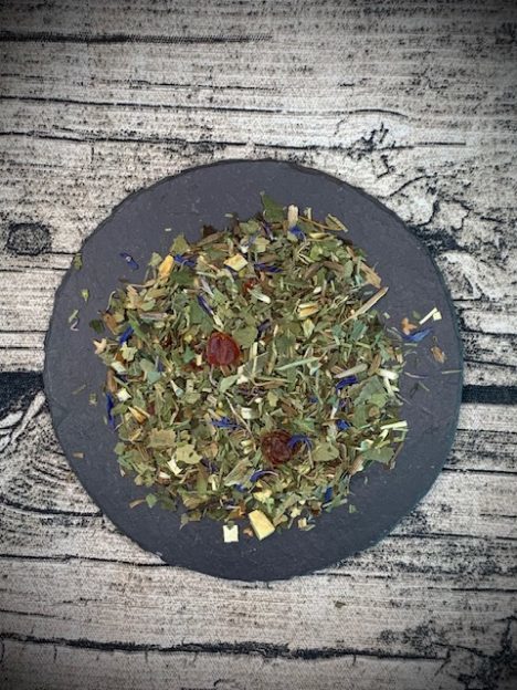 Schachtelhalmkraut, Birkenblätter, Riesengoldrutenkraut, Brennesselblätter, bitterer Fenchel, Hagebuttenschalen, Pfefferminzblätter, Süßholzwurzel.