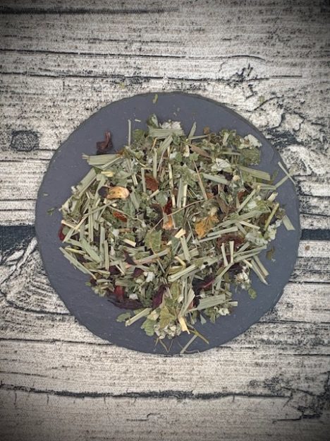 Hibiscus, Lemongras, Himbeerblätter, Hagebutte, Pfefferminze, Melisse